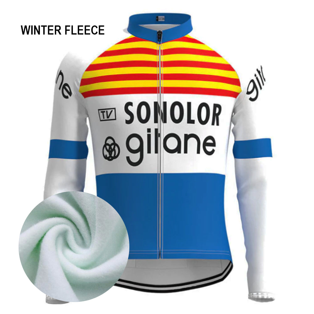 Affrontez le froid avec élégance grâce à ce maillot manches longues vintage inspiré des légendaires équipes cyclistes Sonolor Gitane. Conçu pour les passionnés de cyclisme rétro, il allie design authentique et technologie moderne pour un confort optimal en automne et en hiver.